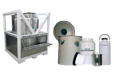 Los diferentes tipos de recipientes para el almacenamiento de muestras crioconservadas puede llegar a ser confuso debido a los muchos nombres utilizados, por ejemplo, dewar, tanque, recipiente, cuba, tina, etc. En realidad, hay dos tipos de recipientes: grandes y pequeños . Los recipientes grandes son de acero inoxidable y a menudo referidos como tanques o tanques a granel. Los recipientes pequeños son normalmente de aluminio y más comúnmente conocido como dewars.